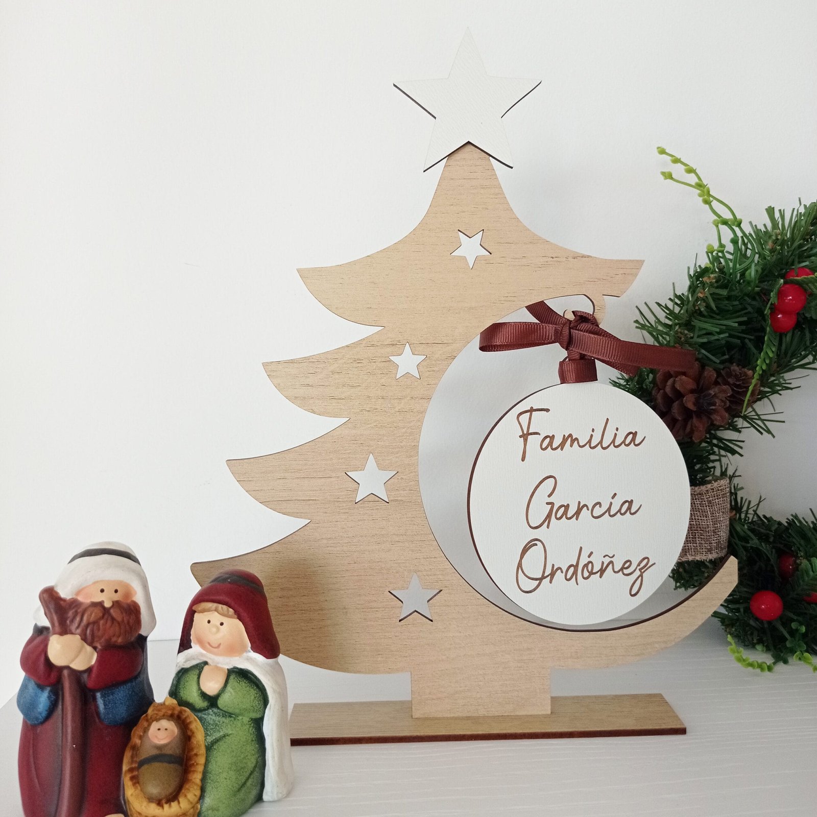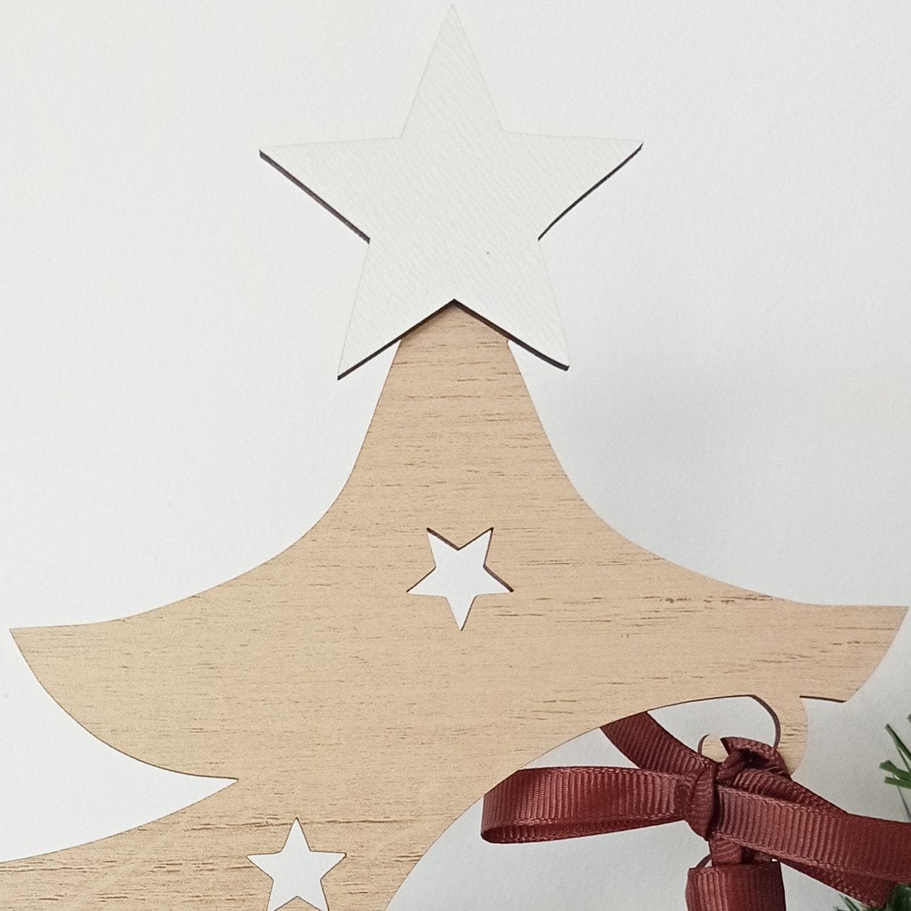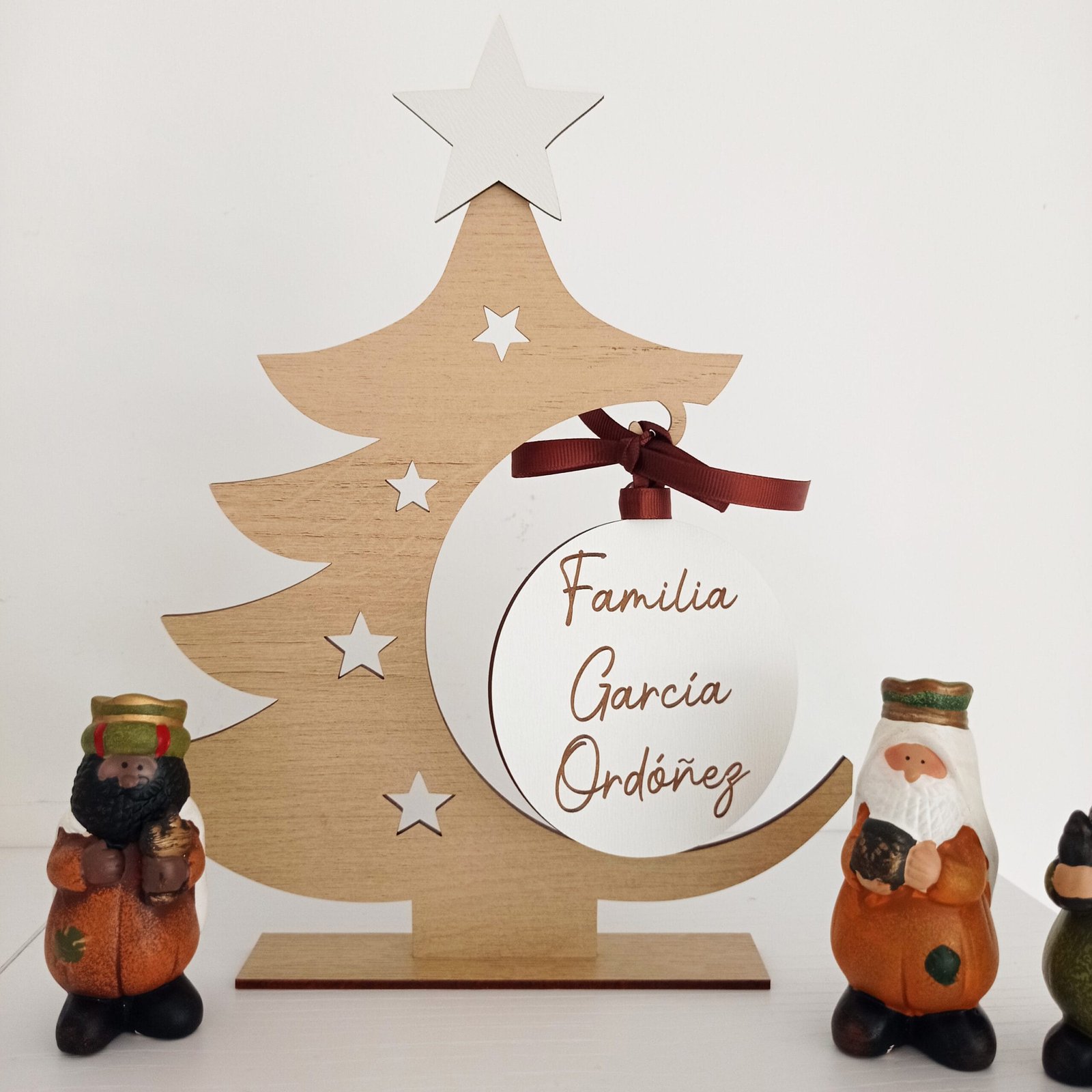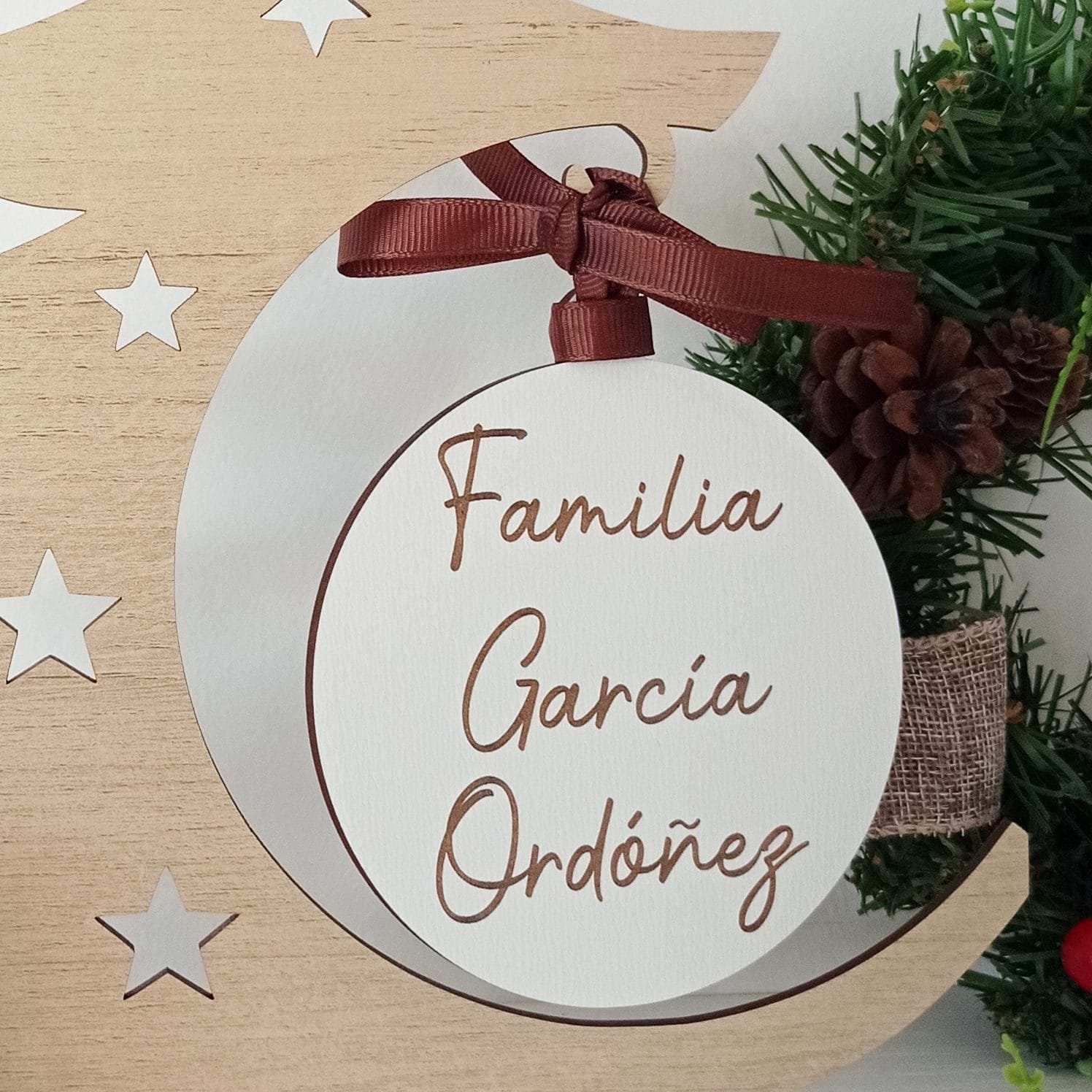 - Color del detalle: Selecciona el color que deseas para la bola colgada y la estrella. Ten en cuenta que el contraste del grabado será mayor en madera de colores claros que en oscuros.