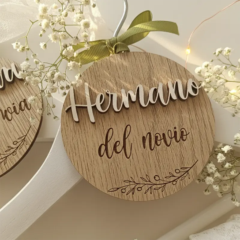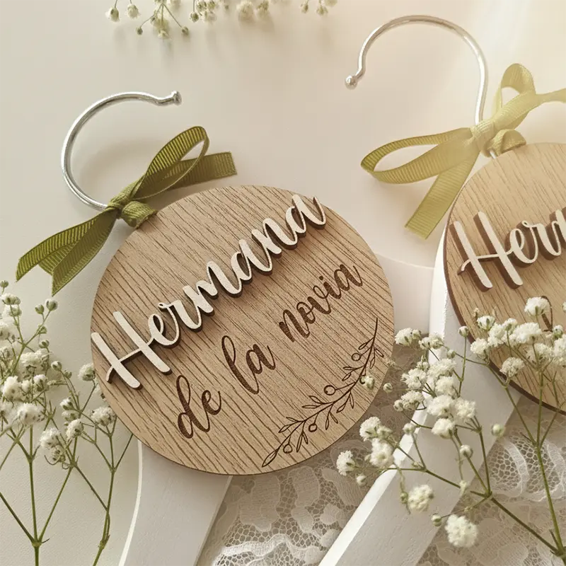 Esta elegante percha de madera está diseñada para convertir un simple regalo en un recuerdo especial. Fabricada artesanalmente y pensada para ocasiones importantes, permite personalizar: