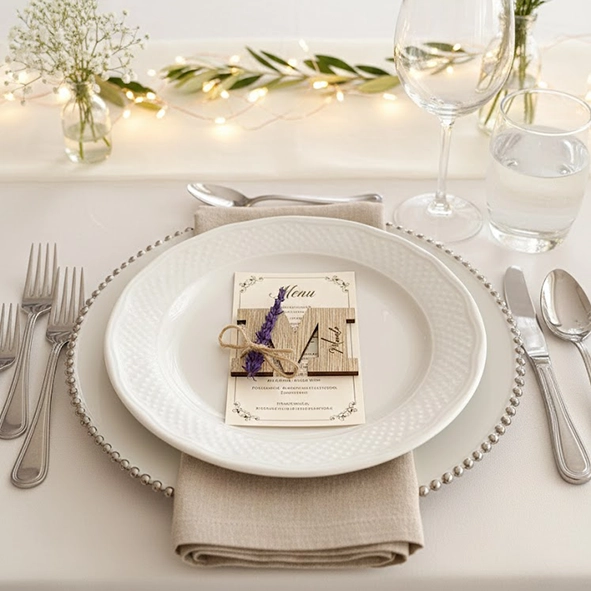 «Madera y lavanda hacen de este marcasitios la mejor opción para una boda con espíritu provenzal.»