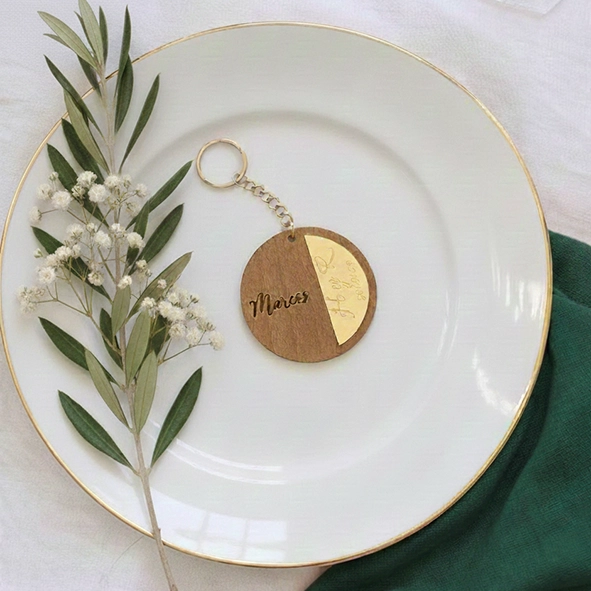 «Entre vetas de madera y destellos dorados, cada nombre se convierte en un pequeño tesoro.»