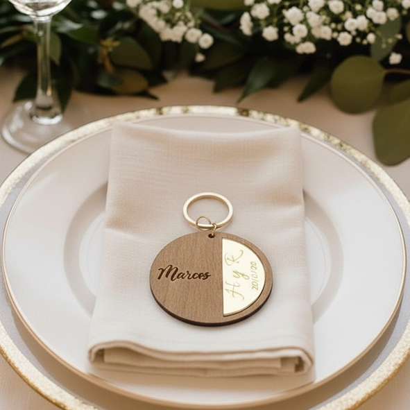 - Iniciales: En cada pieza se grabarán las iniciales de los novios o del niño que haga la comunión o el bautizo, junto con la fecha del evento.