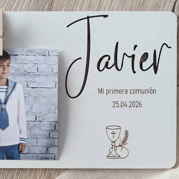 📝 Recordatorio comunión personalizado marco de madera con pinza